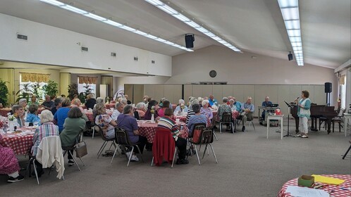 Our seniors enjoy fellowship meals at our Senior Adult Ministry (SAM) Luncheons 3-4 times annually. SAM Luncheons are typically held in the Fellowship Hall and include a catered meal and entertainment.